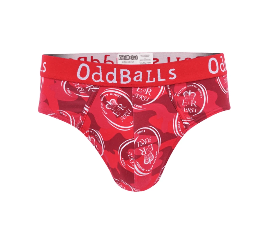 - The OddBalls Army Camo Rugby Union Briefs are available in a range of sizes to fit every body type. Elastic waistband provides a snug and secure fit for maximum comfort.