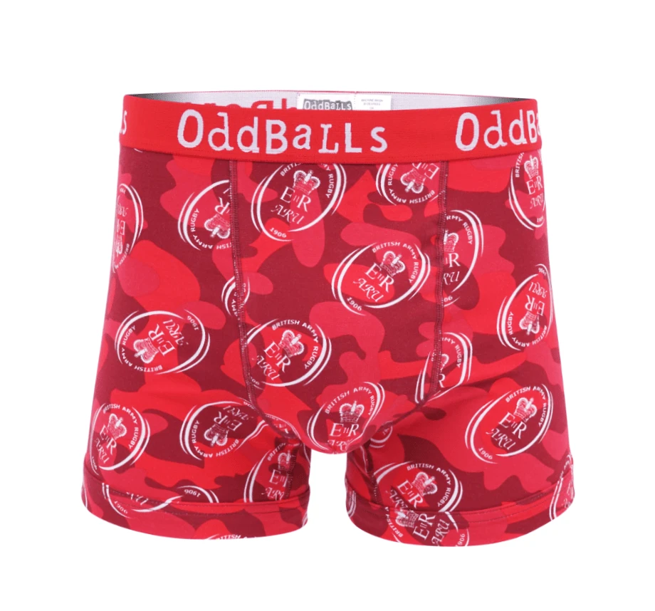 - Stay comfortable and stylish with OddBalls Army Rugby Union Camo Men’s Boxer Shorts. Designed for everyday wear, these boxer shorts feature a unique camo pattern inspired by rugby culture.