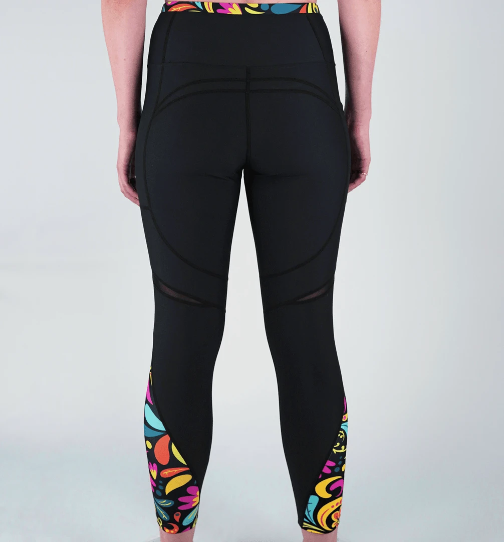 - The OddBalls Botanical Leggings are designed with a high-waisted fit and a soft, elastic waistband that ensures a snug and comfortable fit throughout your activities.