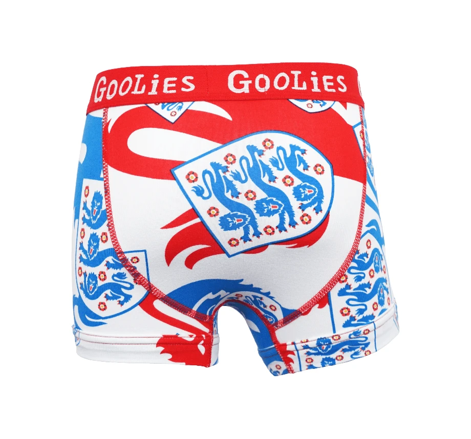 - These boxer shorts are designed with vibrant colors and a playful Three Lions print, making them a great addition to your child’s underwear collection. Perfect for everyday wear or as a gift for young football enthusiasts.