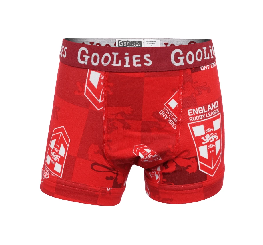 - Show off your team spirit with the OddBalls Boys Boxer Shorts in England Rugby League Red. These vibrant boxer shorts are perfect for young rugby fans.