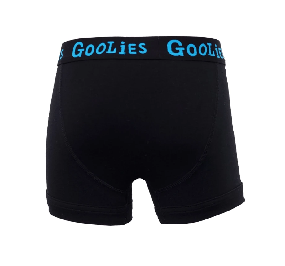 - Fun Design: These boxer shorts feature a playful Goolies design in black and cyan, making them a fun and stylish choice for kids who love unique patterns.