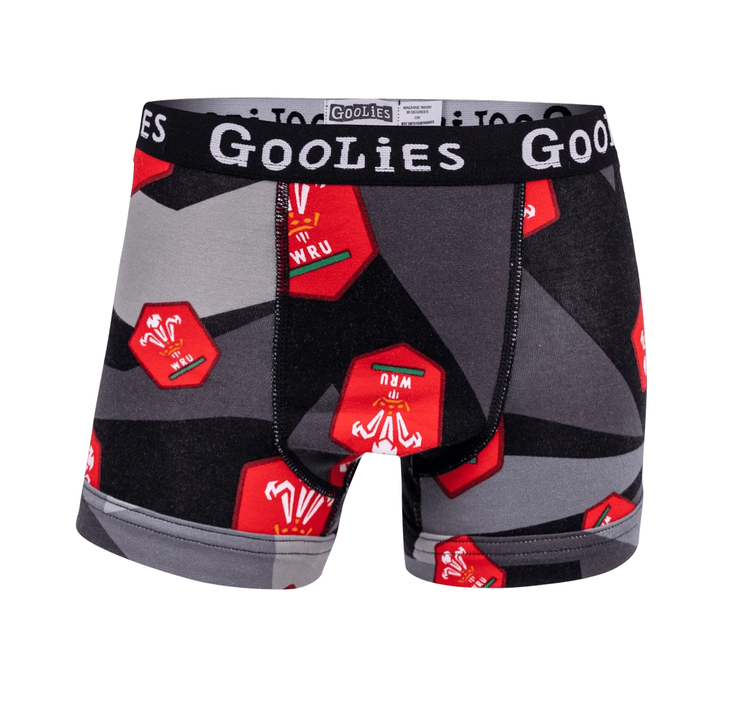 - Show off your team spirit with these OddBalls Boys Boxer Shorts featuring the Welsh Rugby Union Away design. Perfect for young rugby fans!