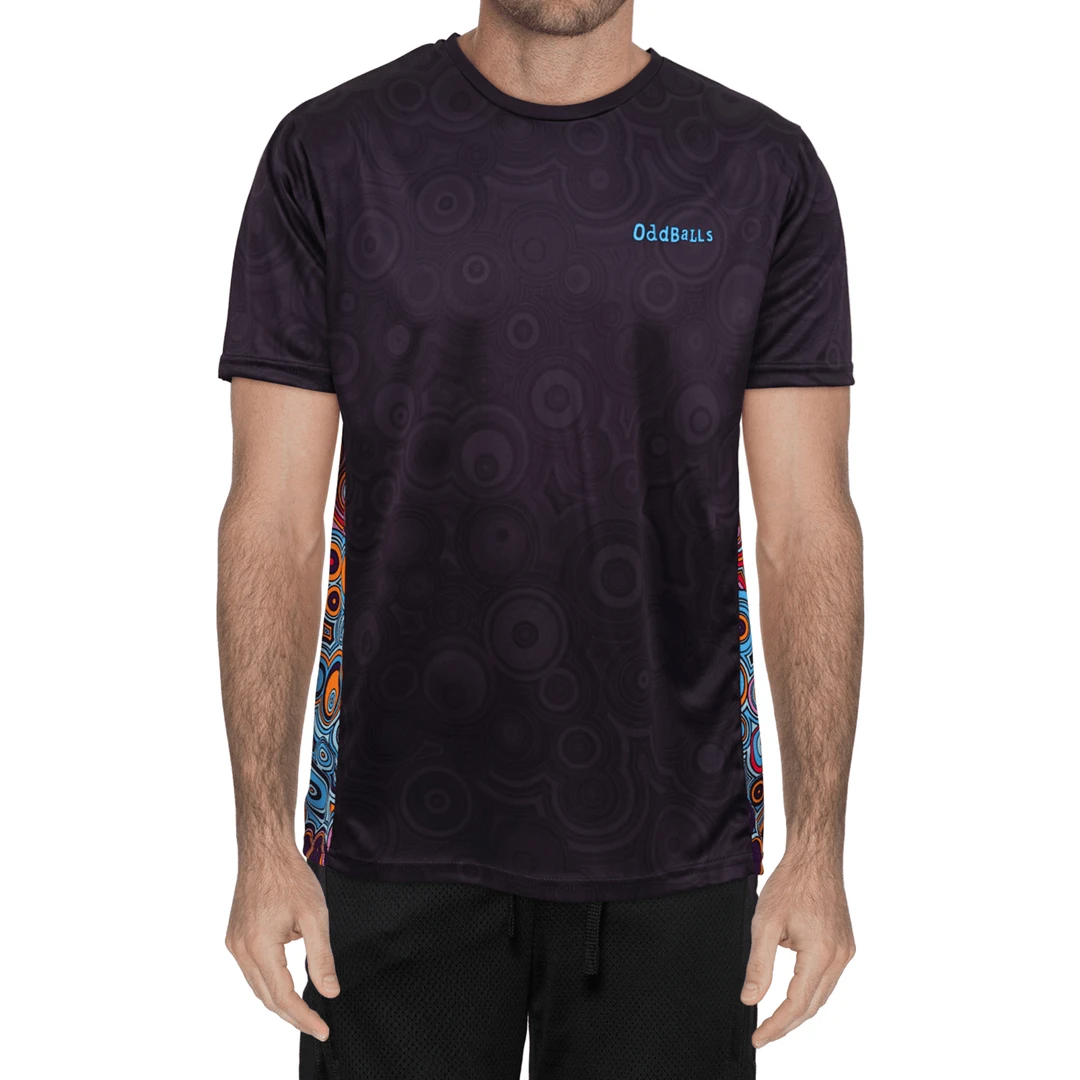 - Stay comfortable and stylish during your workouts with the OddBalls Bubbles Tech Fit Men’s Training T-Shirt. Designed for performance, this lightweight and breathable shirt is perfect for any training session.