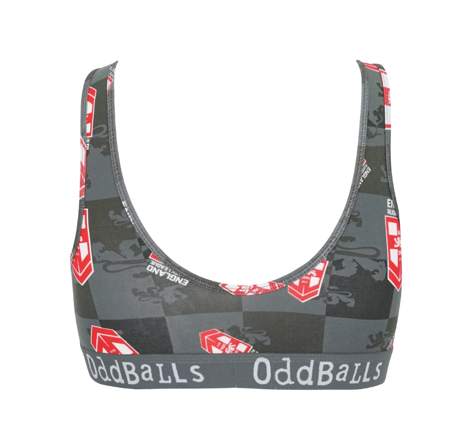 - Show your team spirit with the OddBalls England Rugby League Grey Ladies Bralette. Designed for comfort and style, this bralette is perfect for casual wear or light sports activities.
