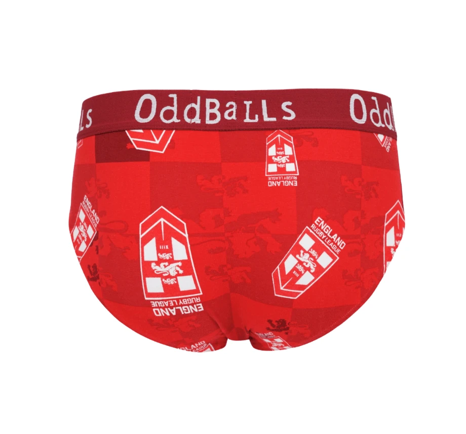 - Show your support for England Rugby League with these stylish and comfortable OddBalls men’s briefs. Featuring a bold red design, these briefs are perfect for both everyday wear and game days.