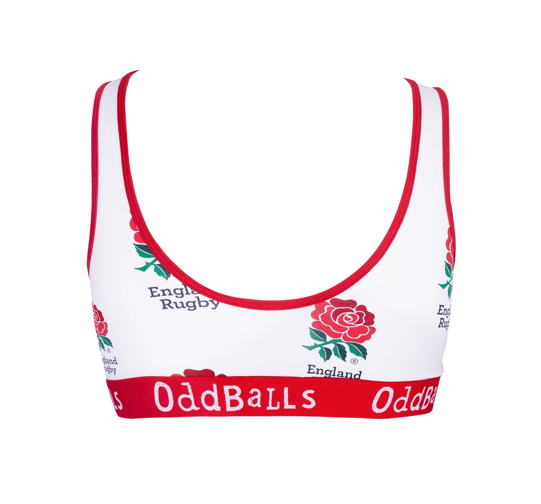 - The OddBalls England Rugby White Ladies Bralette combines comfort and style, making it the perfect choice for sports and casual wear. Designed with soft, breathable fabric, it offers excellent support and flexibility.