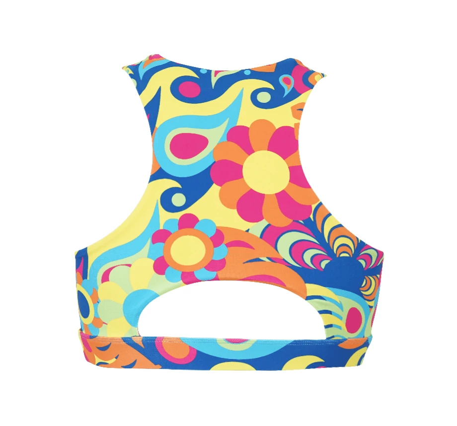 - Featuring a unique hippy jungle print, this sports bra offers a perfect blend of fashion and functionality, making it ideal for yoga, gym sessions, or casual wear.
