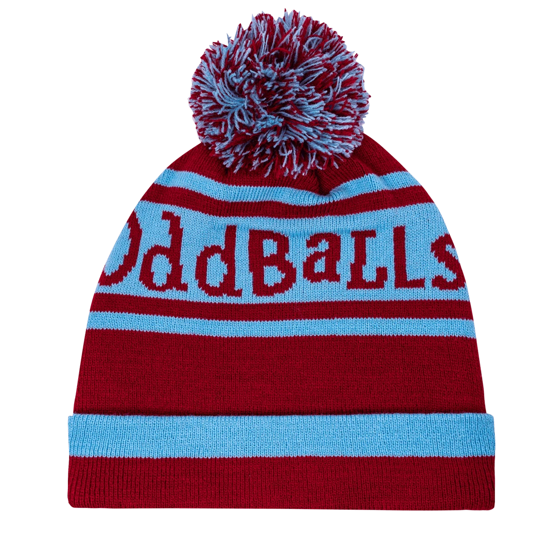 OddBalls Original Burgundy & Sky Bobble Hat – Stylish Winter Accessory for Men & Women