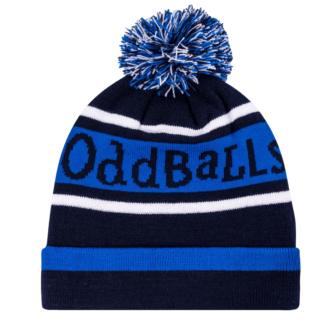 OddBalls Original Navy Royal White Bobble Hat – Warm Winter Beanie for Men & Women