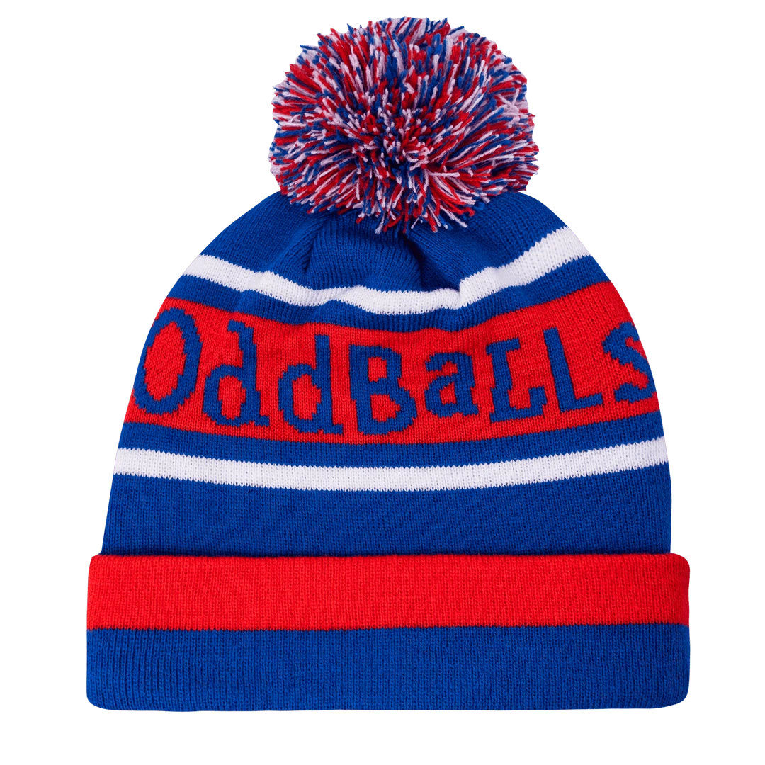 - Stay cozy and fashionable with the OddBalls Original Royal Red White Bobble Hat. This unisex knitted beanie is perfect for winter, offering both warmth and style.