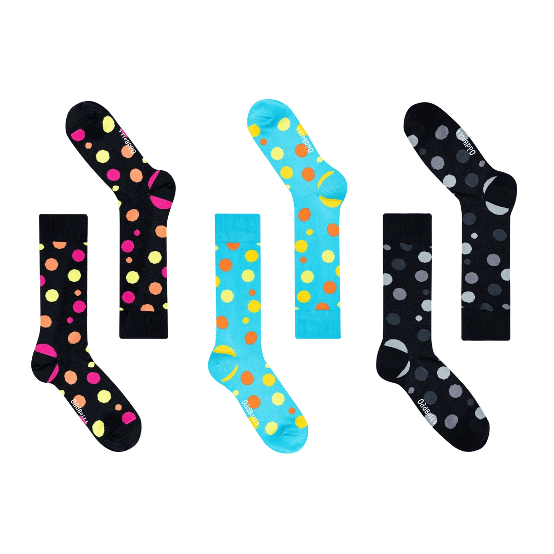 - Brighten up your day with the OddBalls Polka Dot Socks Bundle! This 3-pack features bold, colorful polka dot designs that are sure to make a statement.