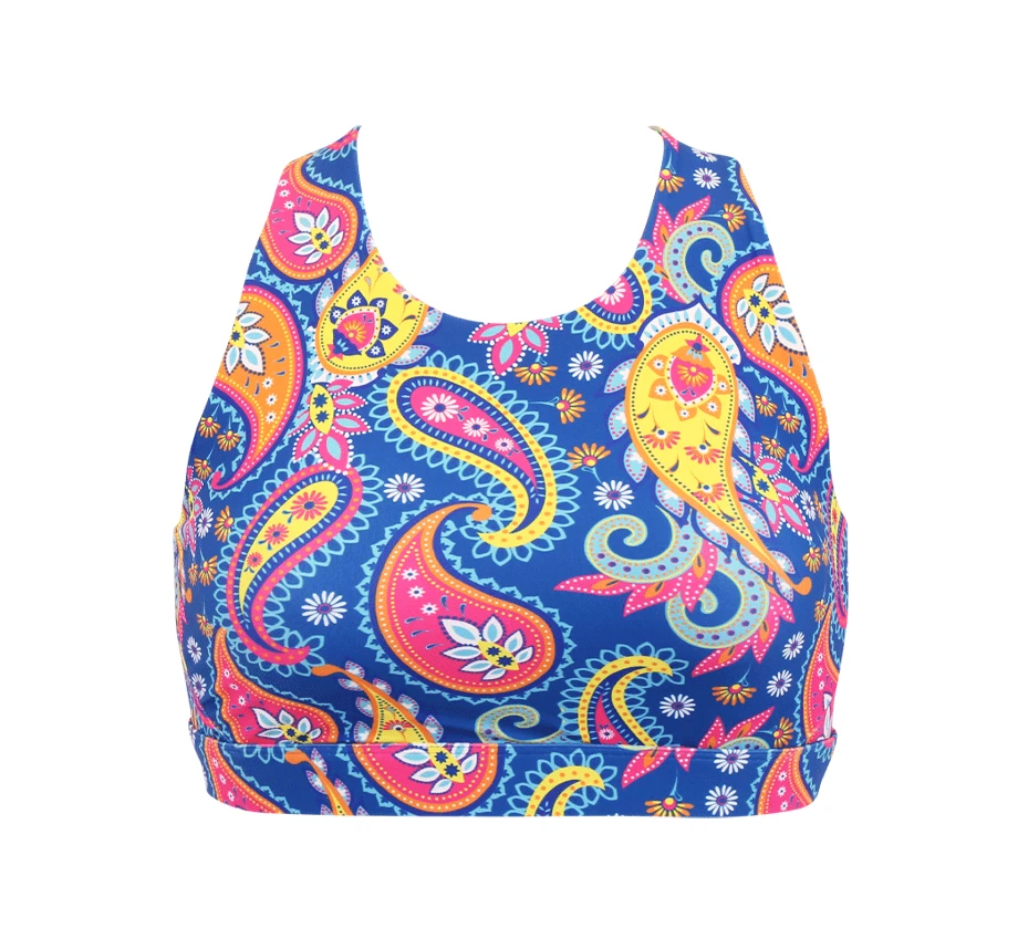 - Featuring a stylish paisley print, this sports bra combines fashion with functionality. The breathable fabric ensures maximum comfort, making it ideal for long hours of wear.