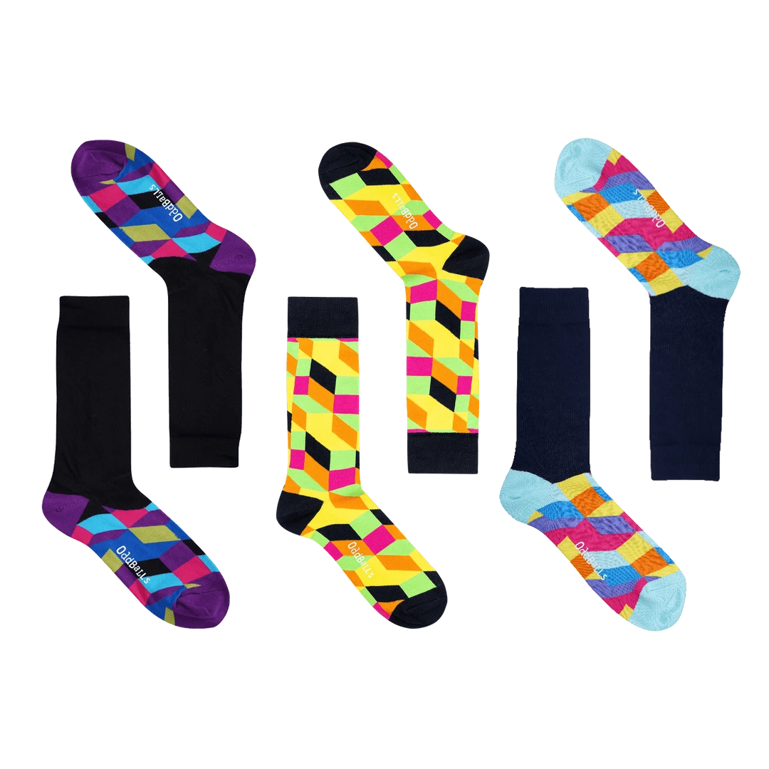 OddBalls Tetris Socks Bundle – 3 Pack Fun & Comfortable Socks for Men & Women