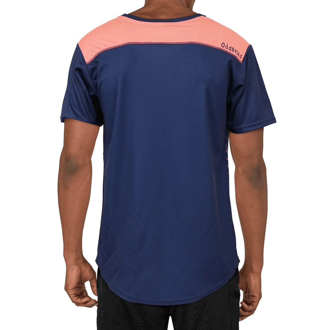 - Available in a striking navy and coral color combination, the OddBalls Zig Zag T-Shirt adds a touch of style to your sportswear collection. Stand out from the crowd with this unique and eye-catching design.